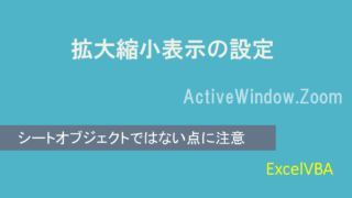 ExcelVBAで拡大縮小表示を設定する場合、各シートの拡大縮小表示はシートオブジェクトではなく、ActiveWindowオブジェクトのZoomプロパティで設定します。この時、アクティブなシートが設定対象になるので注意が必要です。