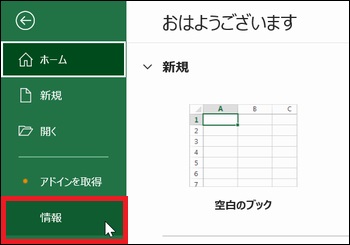 Excelの「ホーム」から「情報」をクリックします。