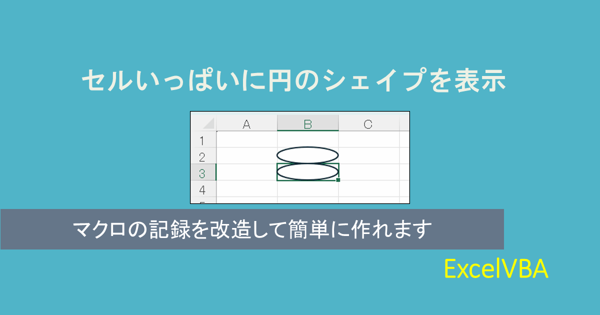 今回はプロシージャに汎用性を持たせてセルを指定するとその大きさに合わせ円を描くようにしてみたいと思います。