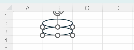 続いてセル内にシェイプを配置した後、どこかのセルを選択して最後に追加したシェイプの選択状態を解除します。